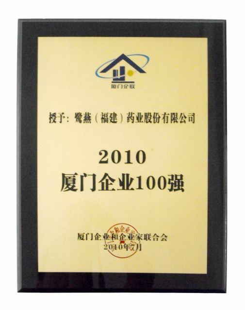 2010年6月28日,“2010廈門企業(yè)100強(qiáng)”榜單正式出爐,鷺燕(福建)集團(tuán)依托穩(wěn)健經(jīng)營,實(shí)現(xiàn)經(jīng)營業(yè)績穩(wěn)步發(fā)展,位列榜單第37位,同比去年排名前進(jìn)12位。自2006年參加廈門企業(yè)百強(qiáng)評(píng)選以來,鷺燕集團(tuán)已連續(xù)5年位列百強(qiáng)企業(yè)榜單。