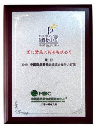 由中國藥品零售發(fā)展研究中心(MDC)、中國醫(yī)藥企業(yè)合作與發(fā)展組織(CPEO)、中國藥品品牌評審委員會主辦的“健康中國?2010中國藥品品牌評選活動”,經(jīng)過為期半年的品牌征集、品牌入圍和專家評選階段,于6月21日公布了“健康中國?2010中國藥品品牌榜”榜單,鷺燕大藥房榮登“健康中國?2010?中國藥品零售企業(yè)綜合競爭力百強”企業(yè)。 |