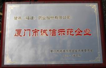“2008 —2009年度廈門誠(chéng)信示范企業(yè)”是廈門首個(gè)誠(chéng)信企業(yè)評(píng)選活動(dòng)。本活動(dòng)由廈門市誠(chéng)信促進(jìn)會(huì)、廈門市企業(yè)和企業(yè)家聯(lián)合會(huì)、各級(jí)政府機(jī)關(guān)等28個(gè)相關(guān)部門聯(lián)合開展,組委會(huì)本著“公開、公正、公平”的原則首次在全市范圍內(nèi)共同開展誠(chéng)信示范企業(yè)的評(píng)選。經(jīng)過一系列激烈的競(jìng)爭(zhēng)及組委會(huì)的嚴(yán)格評(píng)選,本企業(yè)最終獲得了 “2008—2009年度廈門市誠(chéng)信示范企業(yè)”的榮譽(yù)稱號(hào)。