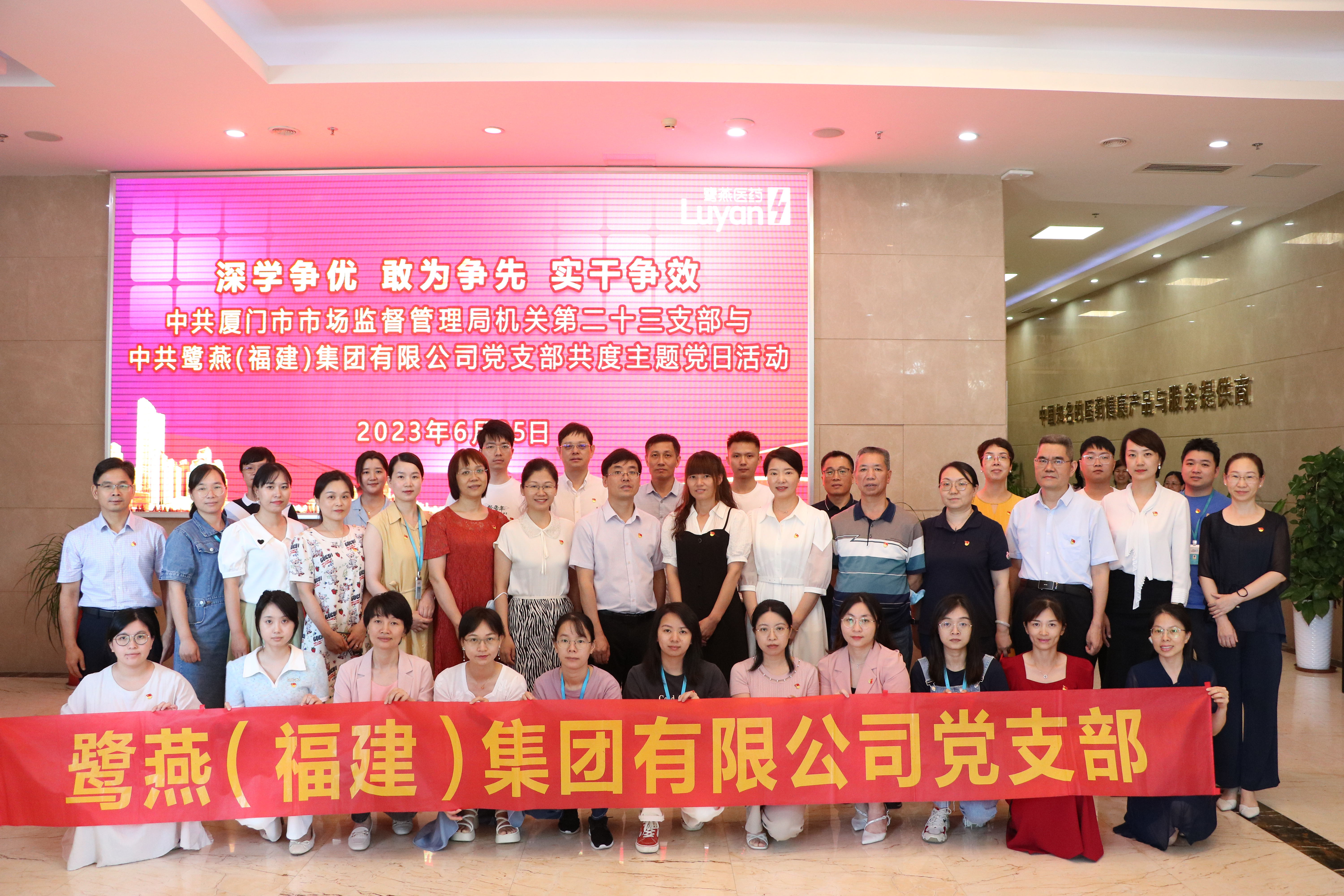 為深入學(xué)習(xí)貫徹黨的二十大精神,慶祝中國共產(chǎn)黨成立102周年,充分發(fā)揮黨建工作對企業(yè)經(jīng)營管理的引領(lǐng)力,鷺燕(福建)集團(tuán)有限公司黨支部積極主動對接監(jiān)管部門基層黨支部,與中共廈門市市場監(jiān)督管理局機(jī)關(guān)第二十三支部共同開展主題黨日活動。2023 年6月25日, 活動在鷺燕總部大廈如期舉行,中共廈門市市場監(jiān)督管理局機(jī)關(guān)第二十三支部全體黨員、鷺燕(福建)集團(tuán)有限公司黨支部黨員以及鷺燕集團(tuán)廈門區(qū)域部分成員公司總經(jīng)理、質(zhì)管干部參加了活動。