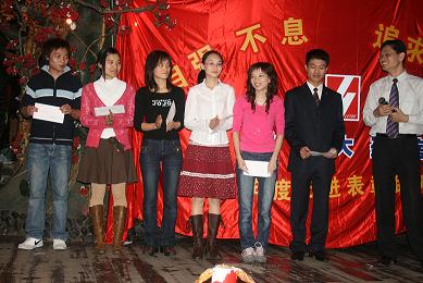 下午4:00整,在《好日子》歡快的歌舞中,表彰聯(lián)歡會正式拉開了序幕。會上共頒發(fā)了九個(gè)獎項(xiàng),分別是最佳員工獎6人,最佳藥師獎2人,最佳新人獎、最佳參與獎、最佳貢獻(xiàn)獎各1人,最佳店長獎3人,最佳門店獎2個(gè),還有兩個(gè)特殊的獎項(xiàng):一是半年度毛利考核指標(biāo)完成相對值、絕對值各前3名的門店,二是2000年8月前入職的老員工獎。頒獎過程中還穿插了員工們自編、自導(dǎo)、自演的小節(jié)目。他們用優(yōu)美的舞姿、甜美的歌聲、俏皮搞笑的小品為杰出的先進(jìn)代表們喝彩、祝福,現(xiàn)場氣氛非?;钴S,高潮迭起,一張張如花的笑靨遨游在一片歡樂的海洋……最后,在《感恩的心》的優(yōu)美的旋律和熱烈的掌聲中,活動暫告一個(gè)段落。