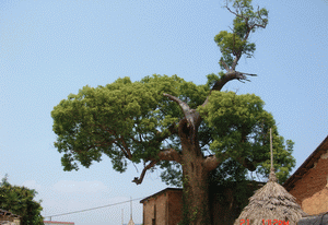 (藍(lán)天,白云,古樹(shù),房屋一幅和諧美麗的“圖畫(huà)”)
